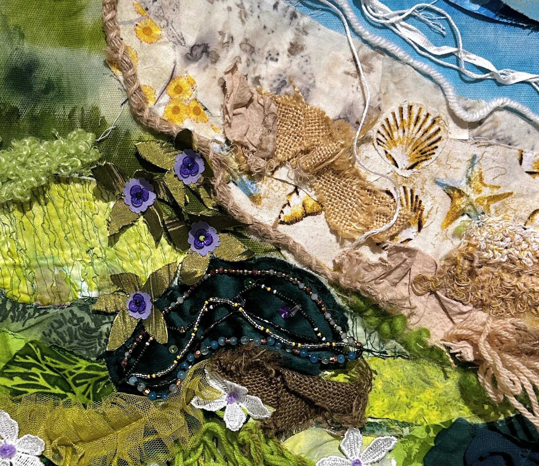 Working entirely by hand pushed me to think differently about texture, composition and storytelling. It was refreshing to create something so physical and personal. Over the semester, I experimented with different handcrafted textile techniques, exploring how I could tell a story of “home” through texture, colour and layering rather than just recreating the landscape.