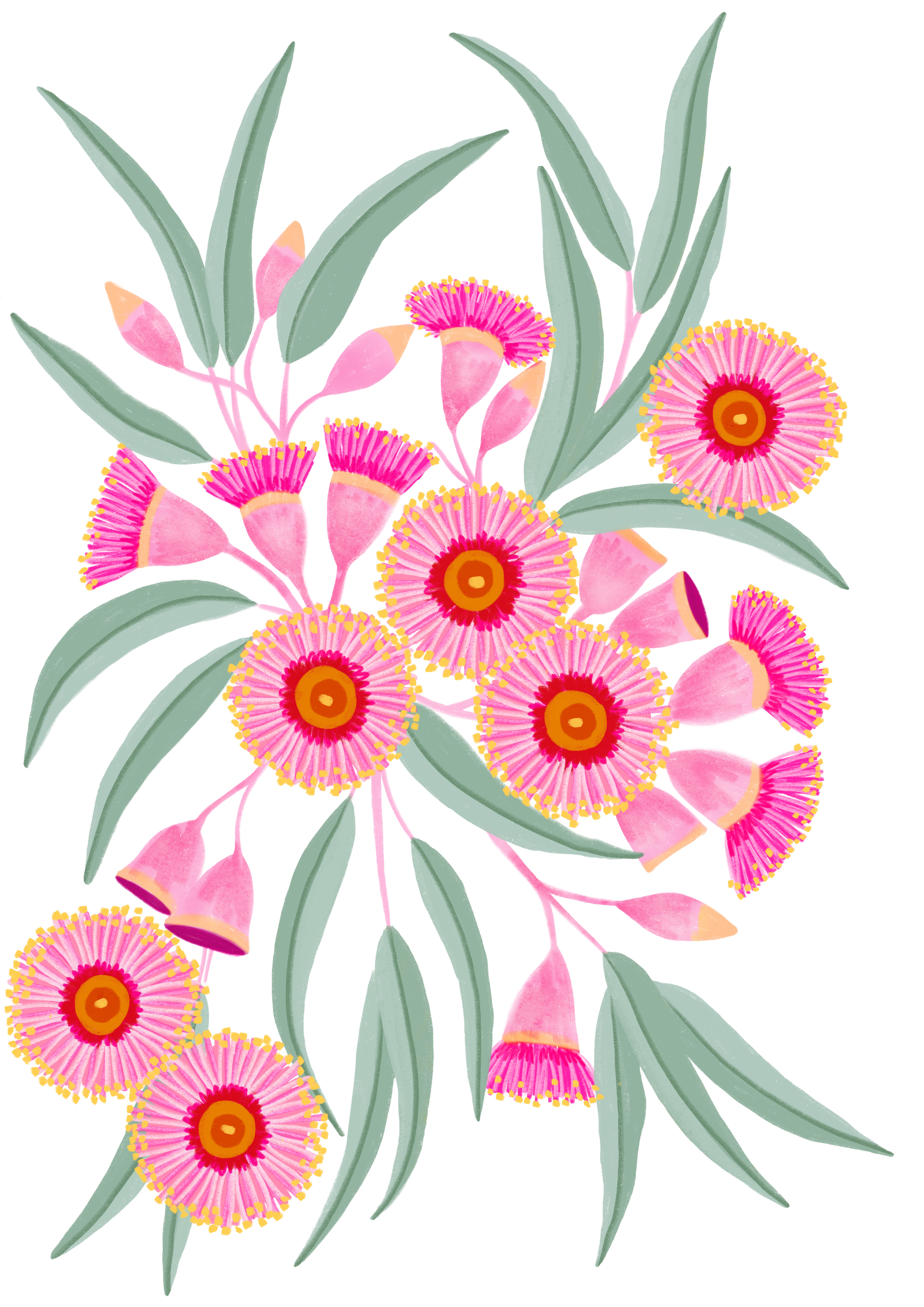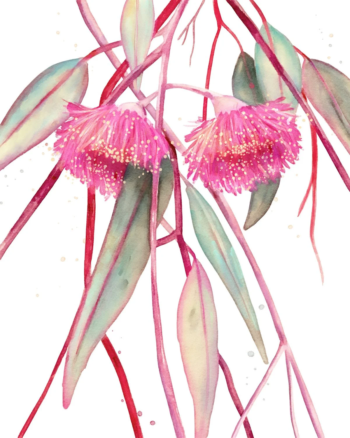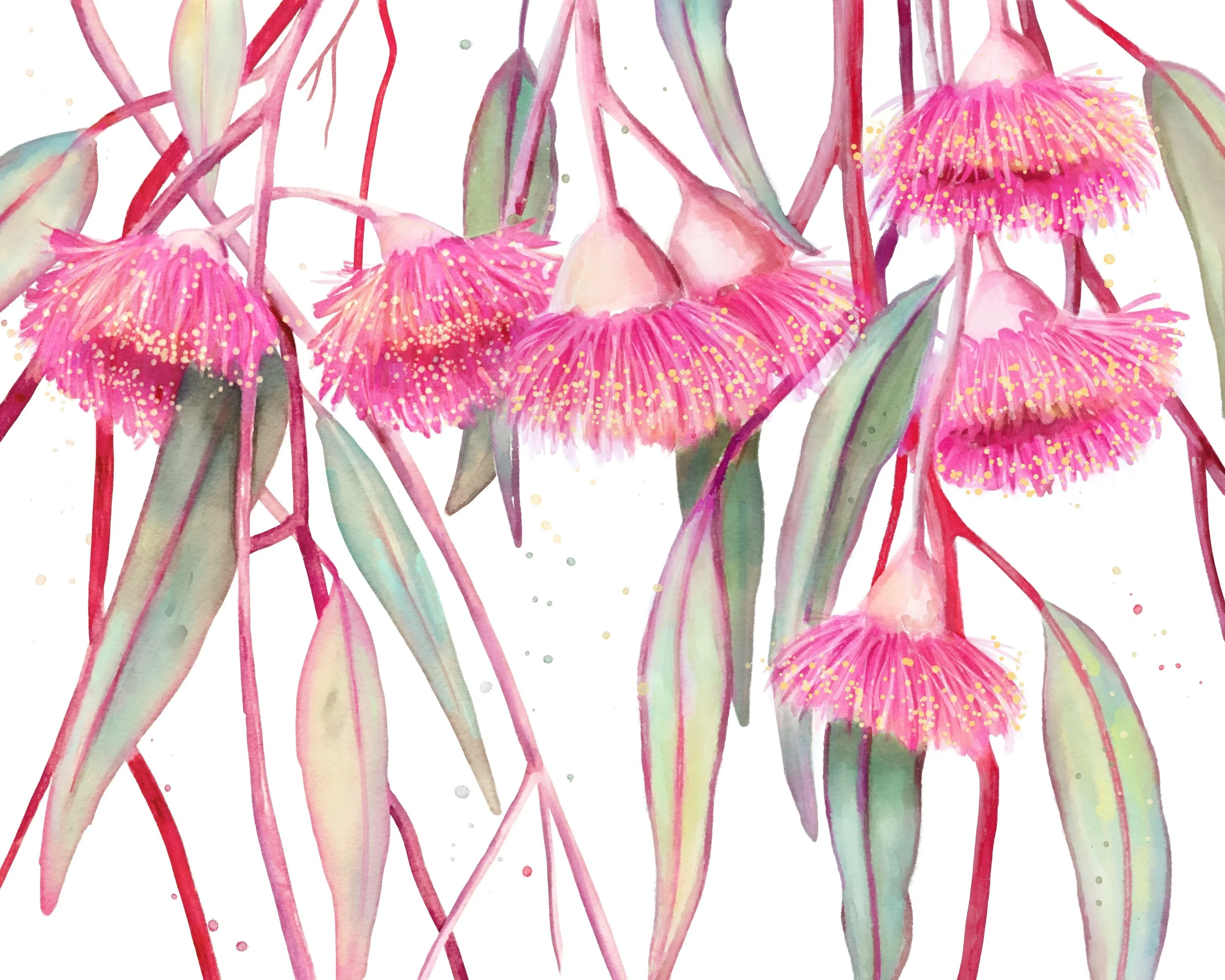 My Australian flower paintings and patterns are created using gouache and watercolour, two mediums I love for their versatility and expressive qualities.